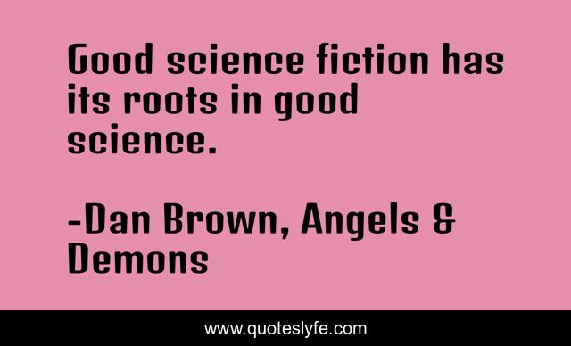 This page presents the quote "Good science fiction has its roots in good science.". Author of this quote is Dan Brown, Angels & Demons. This quote is about origins, science, science-fiction, writing, books, scifi, roots,.