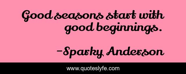 This page presents the quote "Good seasons start with good beginnings.". Author of this quote is Sparky Anderson. This quote is about seasons, beginnings, start,.
