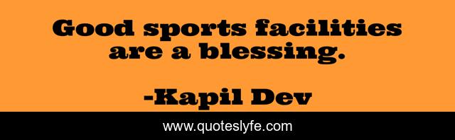 This page presents the quote "Good sports facilities are a blessing.". Author of this quote is Kapil Dev. This quote is about facilities, good, blessing,.