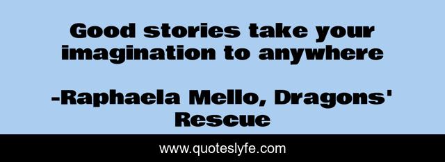 "Raphaela Mello, Dragons' Rescue Quotes." Quoteslyfe.com, 2025. Fri. 05 Dec. 2025. <https://www.quoteslyfe.com/quote/Good-stories-take-your-imagination-to-anywhere-126432>.