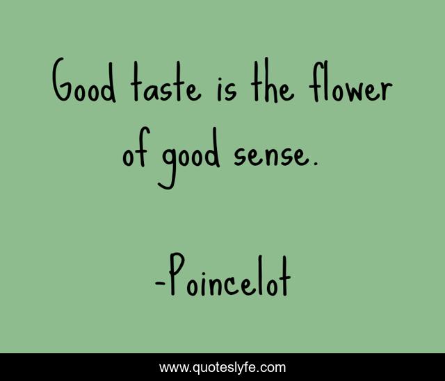 This page presents the quote "Good taste is the flower of good sense.". Author of this quote is Poincelot. .