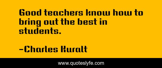 This page presents the quote "Good teachers know how to bring out the best in students.". Author of this quote is Charles Kuralt. This quote is about good, best,.