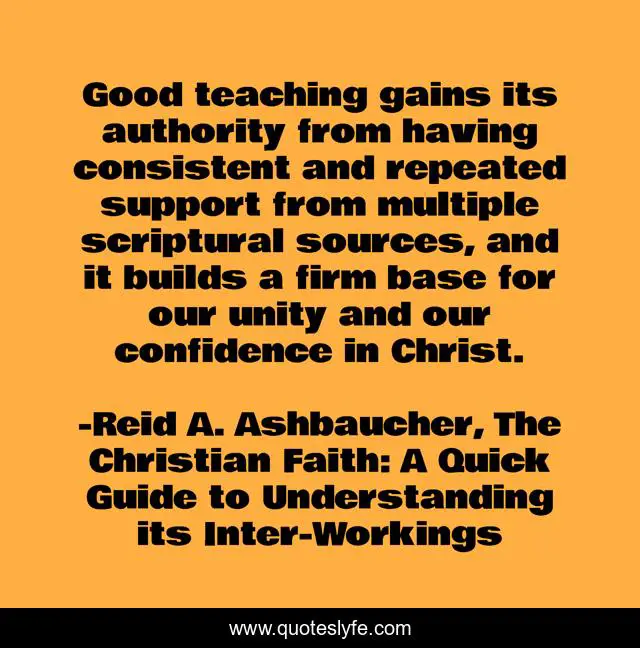 "Reid A. Ashbaucher, The Christian Faith: A Quick Guide to Understanding its Inter-Workings Quotes." Quoteslyfe.com, 2025. Mon. 08 Dec. 2025. <https://www.quoteslyfe.com/quote/Good-teaching-gains-its-authority-from-having-198622>.