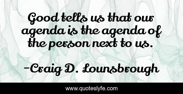 This page presents the quote "Good tells us that our agenda is the agenda of the person next to us.". Author of this quote is Craig D. Lounsbrough. .