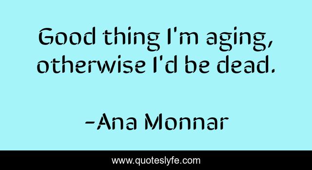 This page presents the quote "Good thing I'm aging, otherwise I'd be dead.". Author of this quote is Ana Monnar. This quote is about aging, life, death, dead, living,.
