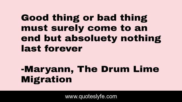 This page presents the quote "Good thing or bad thing must surely come to an end but absoluety nothing last forever". Author of this quote is Maryann, The Drum Lime Migration. .