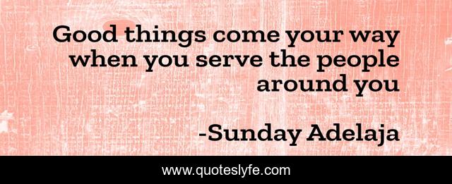 This page presents the quote "Good things come your way when you serve the people around you". Author of this quote is Sunday Adelaja. This quote is about kingdom, life, love, destiny, service, people, money, god, work,.