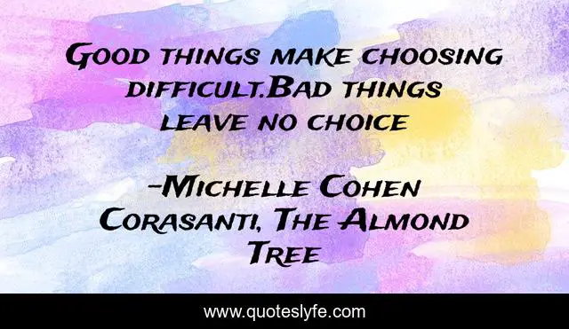 This page presents the quote "Good things make choosing difficult.Bad things leave no choice". Author of this quote is Michelle Cohen Corasanti, The Almond Tree. .