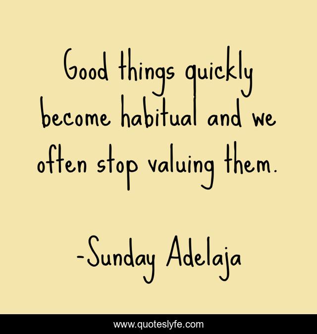 This page presents the quote "Good things quickly become habitual and we often stop valuing them.". Author of this quote is Sunday Adelaja. This quote is about good, habit,.