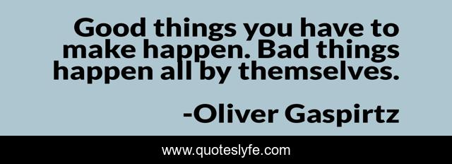 This page presents the quote "Good things you have to make happen. Bad things happen all by themselves.". Author of this quote is Oliver Gaspirtz. This quote is about good-vs-evil, bad, good, life, success,.