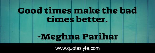 This page presents the quote "Good times make the bad times better.". Author of this quote is Meghna Parihar. .