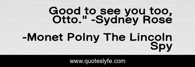 "Monet Polny The Lincoln Spy Quotes." Quoteslyfe.com, 2025. Sat. 06 Dec. 2025. <https://www.quoteslyfe.com/quote/Good-to-see-you-too-Otto-Sydney-83058>.