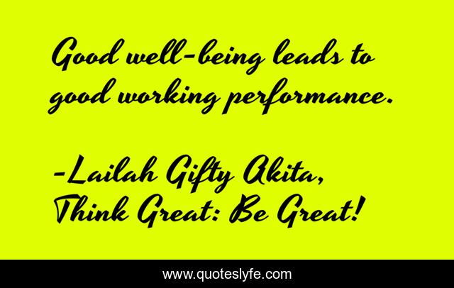 "Lailah Gifty Akita, Think Great: Be Great! Quotes." Quoteslyfe.com, 2025. Mon. 08 Dec. 2025. <https://www.quoteslyfe.com/quote/Good-well-being-leads-to-good-working-34662>.
