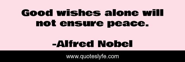 "Alfred Nobel Quotes." Quoteslyfe.com, 2025. Mon. 08 Dec. 2025. <https://www.quoteslyfe.com/quote/Good-wishes-alone-will-not-ensure-peace-323400>.