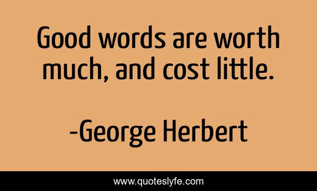 "George Herbert Quotes." Quoteslyfe.com, 2025. Mon. 08 Dec. 2025. <https://www.quoteslyfe.com/quote/Good-words-are-worth-much-and-cost-288279>.