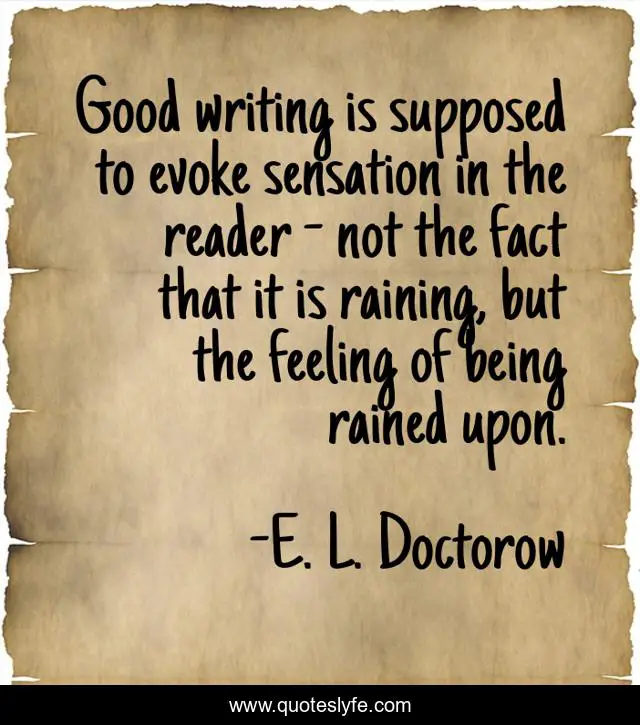 This page presents the quote "Good writing is supposed to evoke sensation in the reader - not the fact that it is raining, but the feeling of being rained upon.". Author of this quote is E. L. Doctorow. This quote is about feeling, writing,.