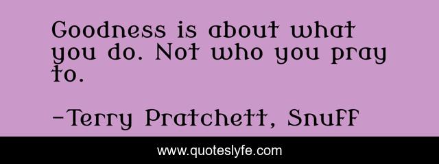 "Terry Pratchett, Snuff Quotes." Quoteslyfe.com, 2025. Fri. 05 Dec. 2025. <https://www.quoteslyfe.com/quote/Goodness-is-about-what-you-do-Not-114451>.