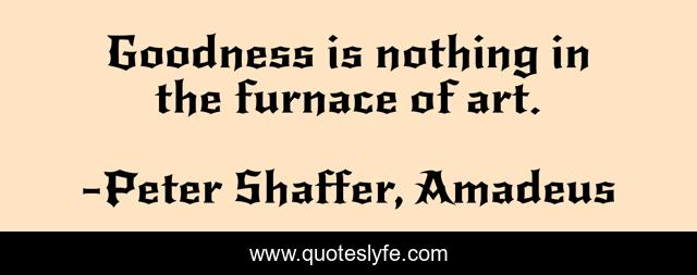 This page presents the quote "Goodness is nothing in the furnace of art.". Author of this quote is Peter Shaffer, Amadeus. This quote is about drama, art, morality,.