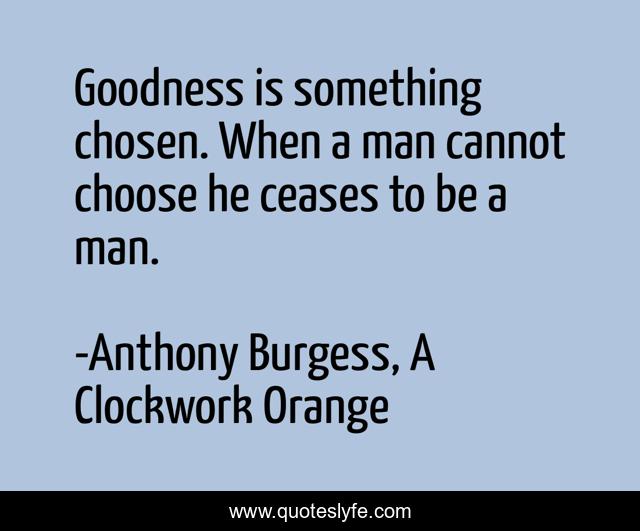 "Anthony Burgess, A Clockwork Orange Quotes." Quoteslyfe.com, 2025. Sat. 06 Dec. 2025. <https://www.quoteslyfe.com/quote/Goodness-is-something-chosen-When-a-man-246712>.