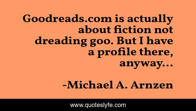 "Michael A. Arnzen Quotes." Quoteslyfe.com, 2025. Sun. 07 Dec. 2025. <https://www.quoteslyfe.com/quote/Goodreads-com-is-actually-about-fiction-not-156515>.
