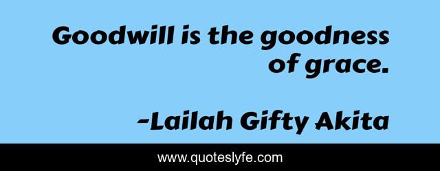 This page presents the quote "Goodwill is the goodness of grace.". Author of this quote is Lailah Gifty Akita. This quote is about christian, grace, goodness, goodwill,.