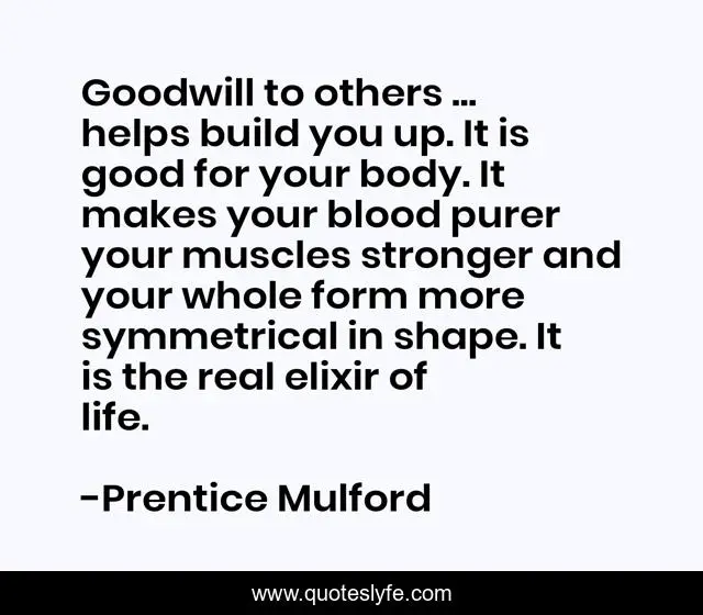 Goodwill to others ... helps build you up. It is good for your body. It makes your blood purer your muscles stronger and your whole form more symmetrical in shape. It is the real elixir of life.
