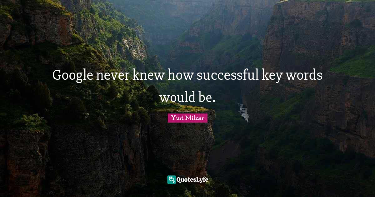 "Yuri Milner Quotes." Quoteslyfe.com, 2026. Wed. 14 Jan. 2026. <https://www.quoteslyfe.com/quote/Google-never-knew-how-successful-key-words-1170335>.