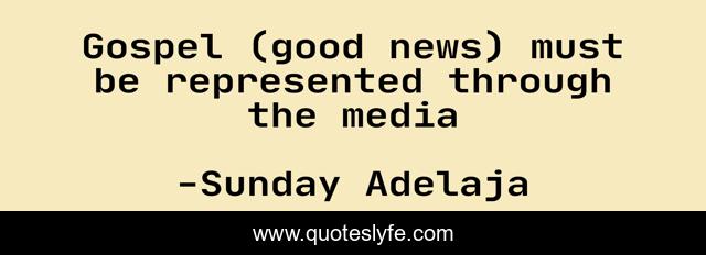 This page presents the quote "Gospel (good news) must be represented through the media". Author of this quote is Sunday Adelaja. This quote is about represented, media, gospel,.