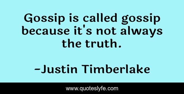 This page presents the quote "Gossip is called gossip because it's not always the truth.". Author of this quote is Justin Timberlake. This quote is about gossip, because, always,.