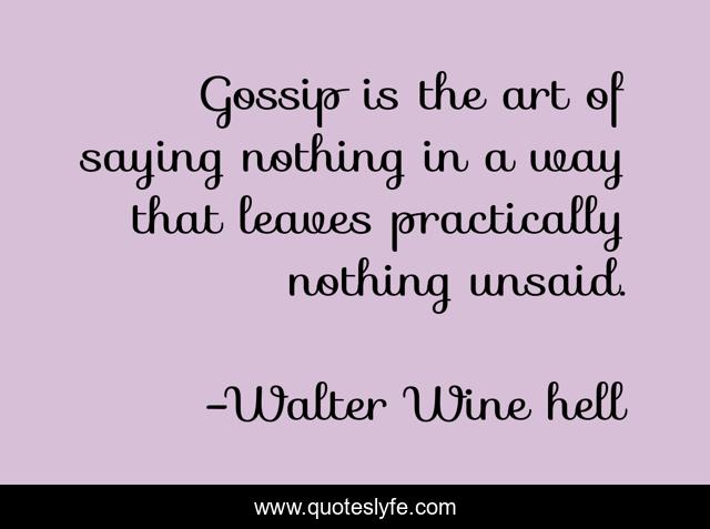 "Walter Wine hell Quotes." Quoteslyfe.com, 2025. Fri. 05 Dec. 2025. <https://www.quoteslyfe.com/quote/Gossip-is-the-art-of-saying-nothing-266927>.
