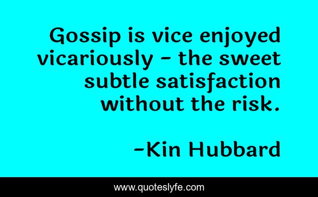 This page presents the quote "Gossip is vice enjoyed vicariously - the sweet subtle satisfaction without the risk.". Author of this quote is Kin Hubbard. This quote is about gossip, gossips,.