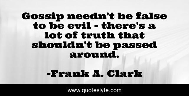 This page presents the quote "Gossip needn't be false to be evil - there's a lot of truth that shouldn't be passed around.". Author of this quote is Frank A. Clark. This quote is about gossip, false, evil,.