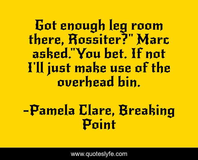 "Pamela Clare, Breaking Point Quotes." Quoteslyfe.com, 2025. Fri. 05 Dec. 2025. <https://www.quoteslyfe.com/quote/Got-enough-leg-room-there-Rossiter-Marc-218098>.