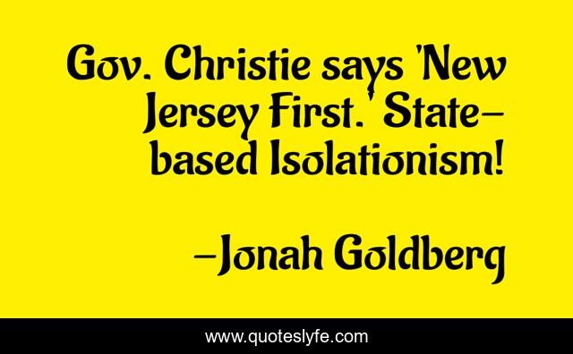 "Jonah Goldberg Quotes." Quoteslyfe.com, 2025. Mon. 08 Dec. 2025. <https://www.quoteslyfe.com/quote/Gov-Christie-says-New-Jersey-First-State-57036>.