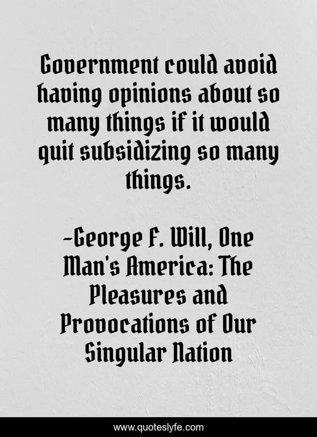 "George F. Will, One Man's America: The Pleasures and Provocations of Our Singular Nation Quotes." Quoteslyfe.com, 2025. Mon. 08 Dec. 2025. <https://www.quoteslyfe.com/quote/Government-could-avoid-having-opinions-about-so-174284>.