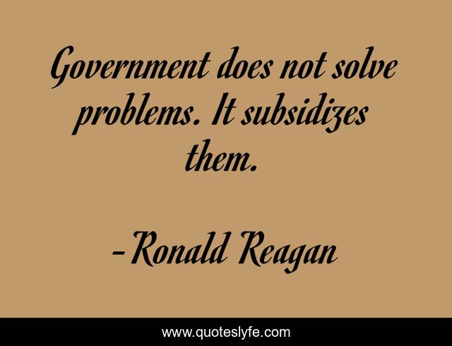 "Ronald Reagan Quotes." Quoteslyfe.com, 2025. Fri. 05 Dec. 2025. <https://www.quoteslyfe.com/quote/Government-does-not-solve-problems-It-subsidizes-173918>.