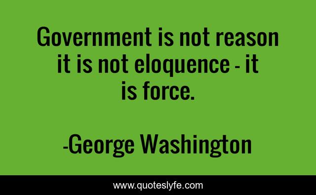 This page presents the quote "Government is not reason it is not eloquence - it is force.". Author of this quote is George Washington. This quote is about rule, government,.