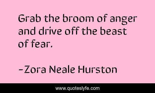 This page presents the quote "Grab the broom of anger and drive off the beast of fear.". Author of this quote is Zora Neale Hurston. This quote is about ways, fear, overcome,.
