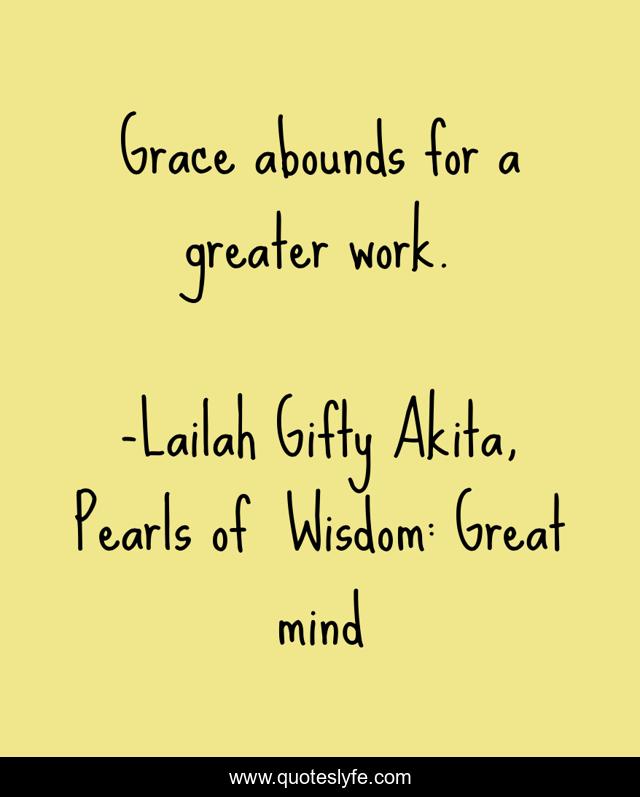 "Lailah Gifty Akita, Pearls of Wisdom: Great mind Quotes." Quoteslyfe.com, 2025. Sun. 07 Dec. 2025. <https://www.quoteslyfe.com/quote/Grace-abounds-for-a-greater-work-85540>.
