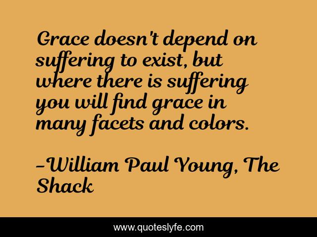 This page presents the quote "Grace doesn't depend on suffering to exist, but where there is suffering you will find grace in many facets and colors.". Author of this quote is William Paul Young, The Shack. This quote is about life, love, grace, affection,.