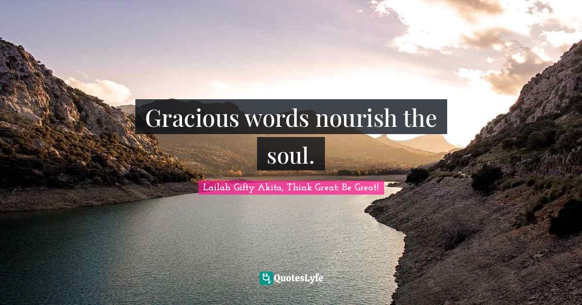 "Lailah Gifty Akita, Think Great: Be Great! Quotes." Quoteslyfe.com, 2026. Wed. 14 Jan. 2026. <https://www.quoteslyfe.com/quote/Gracious-words-nourish-the-soul-112949>.
