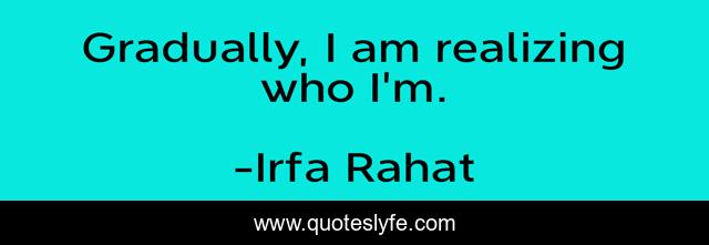 This page presents the quote "Gradually, I am realizing who I'm.". Author of this quote is Irfa Rahat. This quote is about quote-of-the-day, life, realization,.