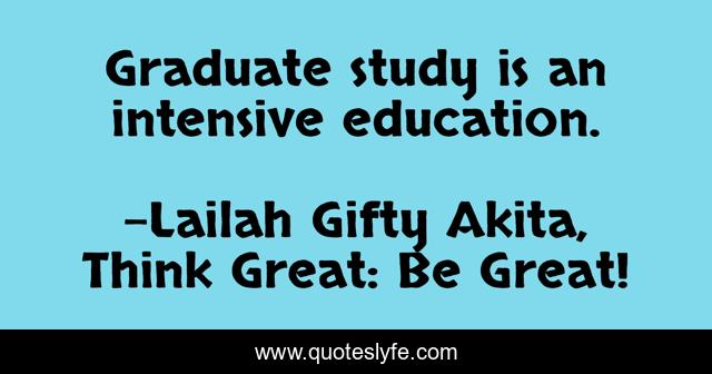 "Lailah Gifty Akita, Think Great: Be Great! Quotes." Quoteslyfe.com, 2025. Mon. 08 Dec. 2025. <https://www.quoteslyfe.com/quote/Graduate-study-is-an-intensive-education-34672>.