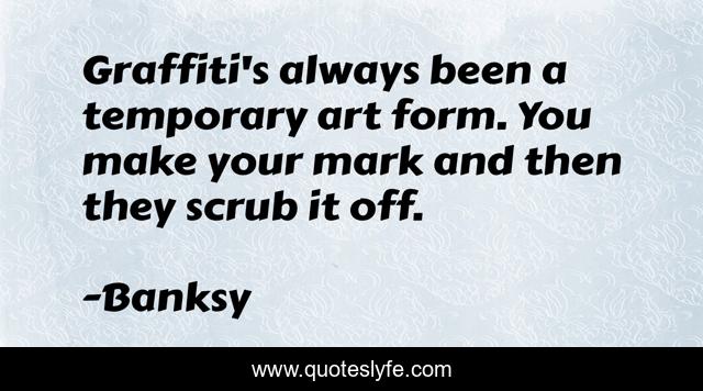 This page presents the quote "Graffiti's always been a temporary art form. You make your mark and then they scrub it off.". Author of this quote is Banksy. This quote is about always, mark,.