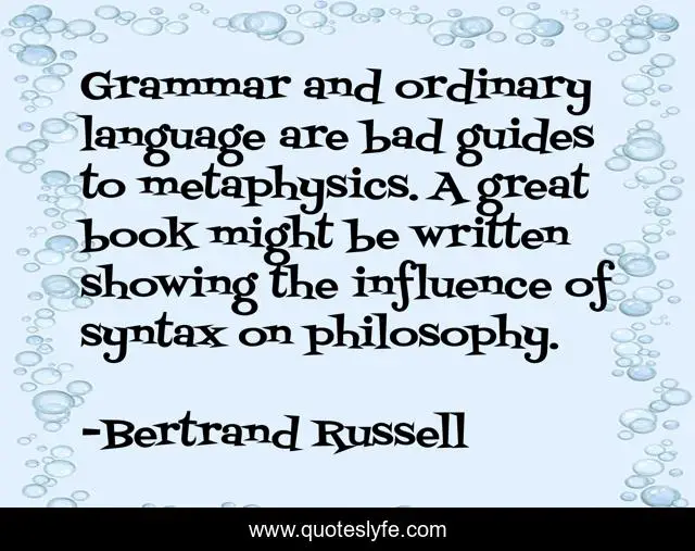 This page presents the quote "Grammar and ordinary language are bad guides to metaphysics. A great book might be written showing the influence of syntax on philosophy.". Author of this quote is Bertrand Russell. .