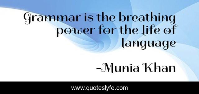 This page presents the quote "Grammar is the breathing power for the life of language". Author of this quote is Munia Khan. This quote is about breath, life, breathing, grammar, language, language-learning, languages, life-of-language, learning,.
