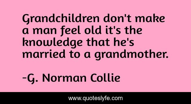 This page presents the quote "Grandchildren don't make a man feel old it's the knowledge that he's married to a grandmother.". Author of this quote is G. Norman Collie. This quote is about fathers, mothers,.