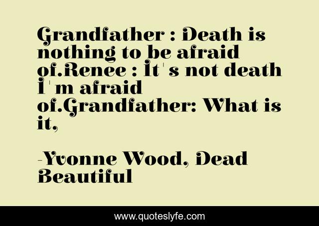 This page presents the quote "Grandfather : Death is nothing to be afraid of.Renee : It's not death I'm afraid of.Grandfather: What is it, ". Author of this quote is Yvonne Wood, Dead Beautiful. This quote is about fear, death, life,.