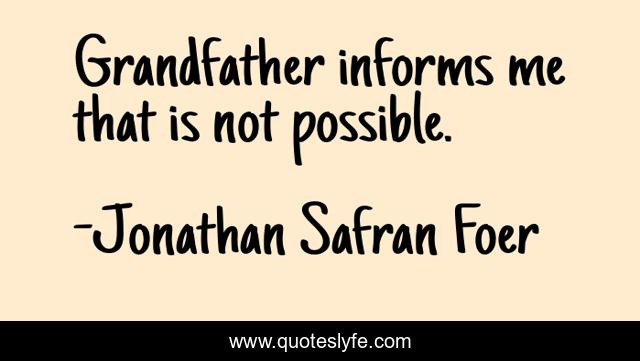 This page presents the quote "Grandfather informs me that is not possible.". Author of this quote is Jonathan Safran Foer. .