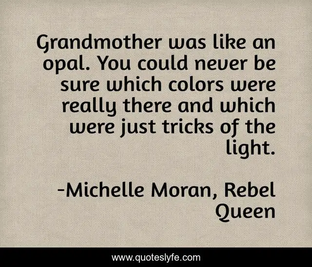 "Michelle Moran, Rebel Queen Quotes." Quoteslyfe.com, 2025. Sat. 06 Dec. 2025. <https://www.quoteslyfe.com/quote/Grandmother-was-like-an-opal-You-could-214687>.